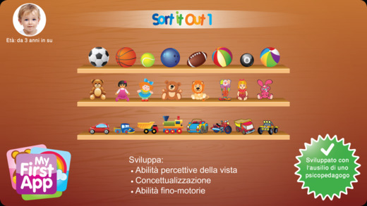 Gioco di abbinamento la figure presentate e la categoria di appartenenza. Al bambino è richiesto di trascinare elementi appartenenti a stessa categoria sul medesimo ripiano.